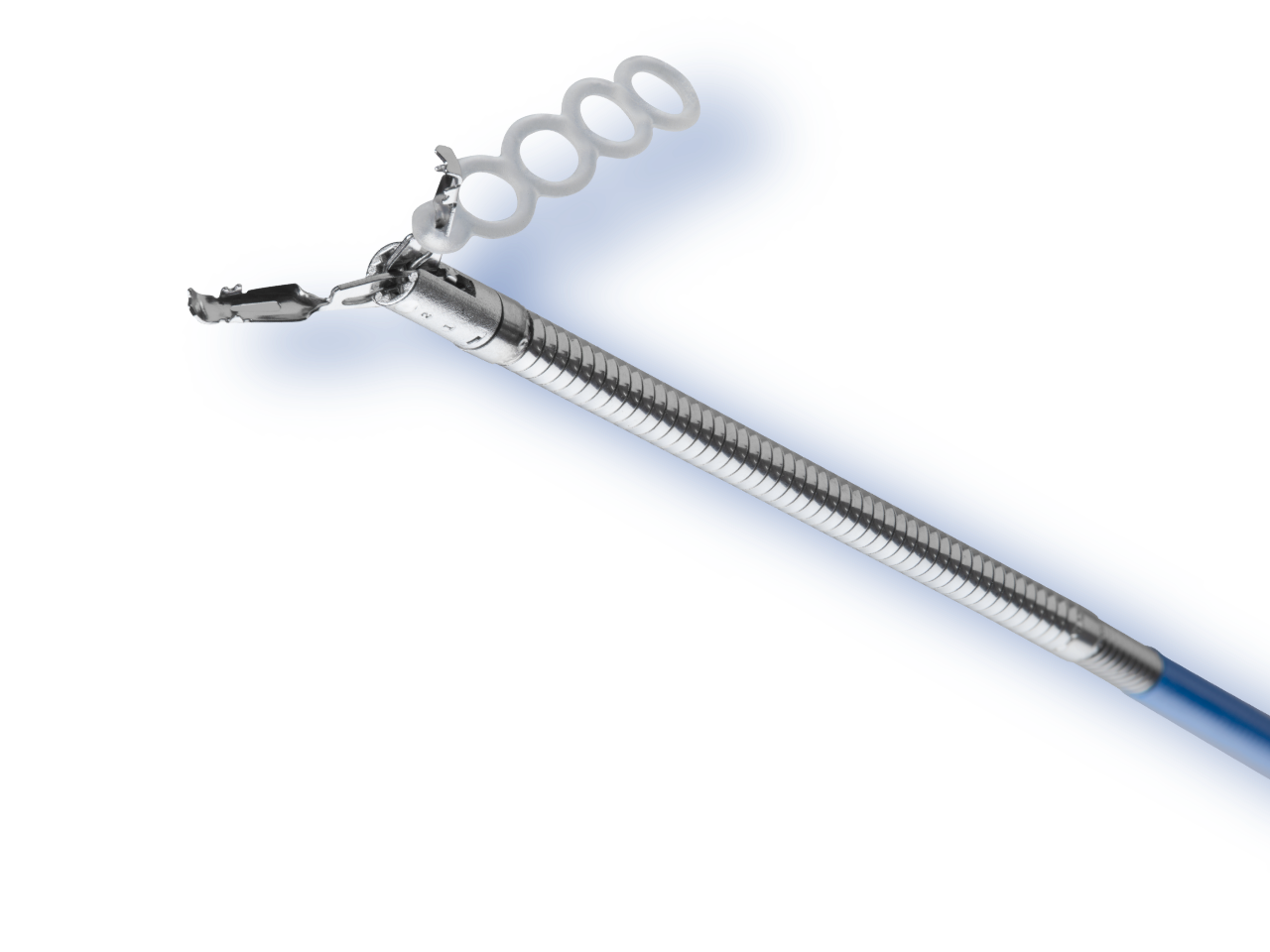 SureTrac™ retracts tissue to assist in tissue exposure, resection, and removal within the stomach and colon. The SureTrac system features a preloaded elastic silicone band on a primary clip and a secondary clip to anchor on tissue. The superelastic silicone band is designed to retract and release elastic potential energy for dynamic traction; this provides enhanced visualization and enables tissue management while dissecting submucosal lesions.