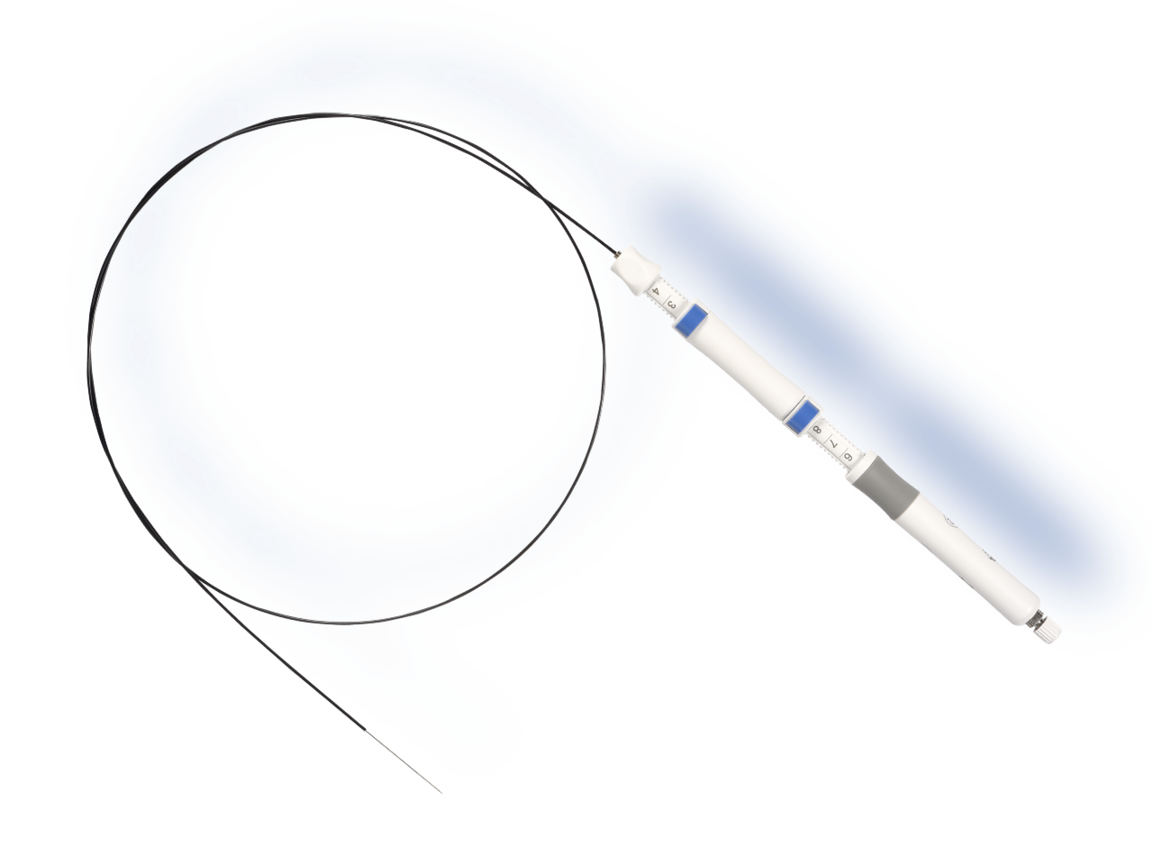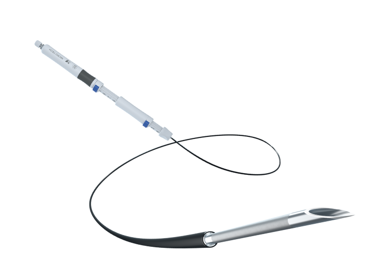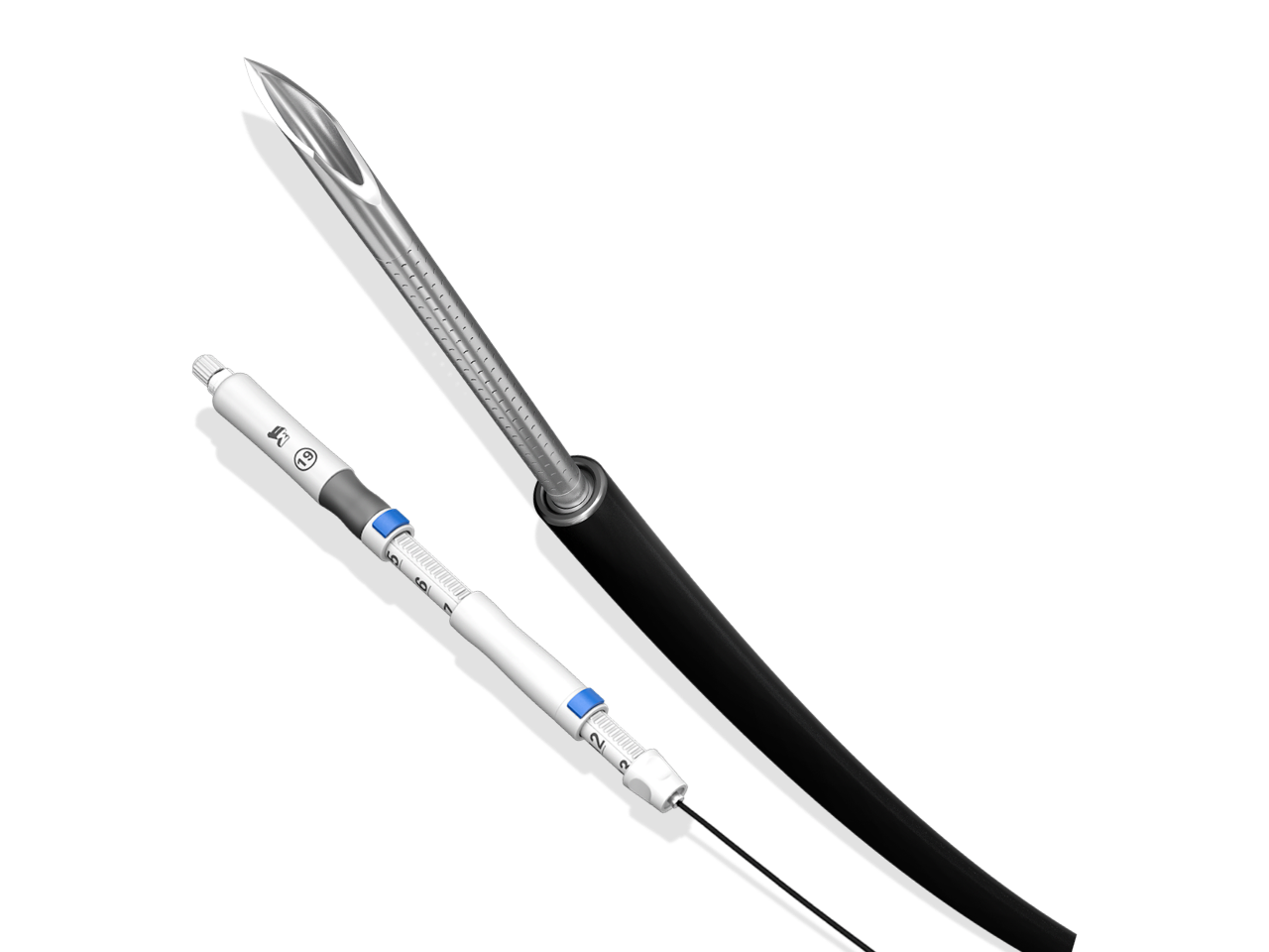 The smooth catheter ensures that it can be pushed through the angled EUS endoscope and that the working channel is protected.