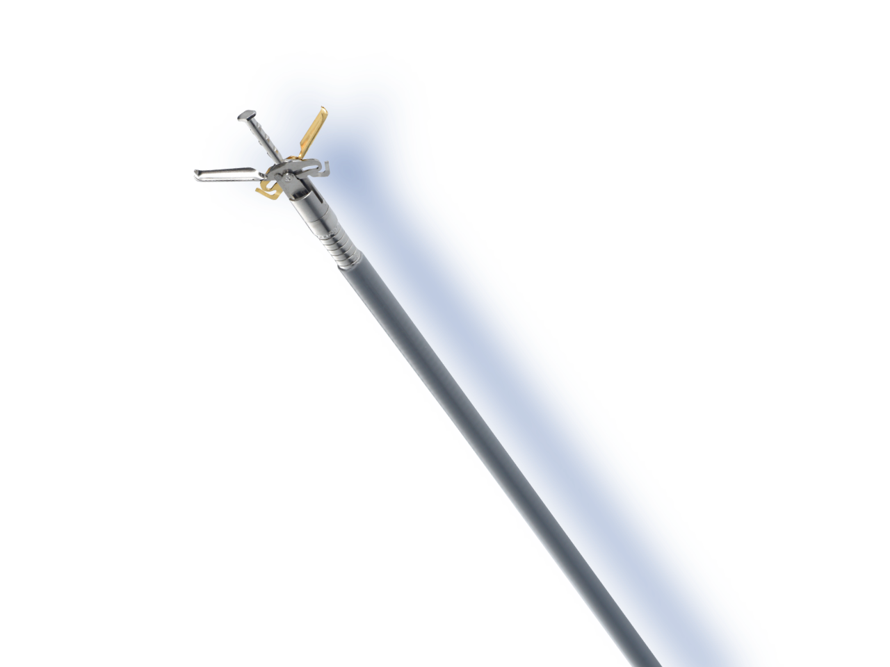 Gastrointestinal defect closure devices should be quick, easy to use, and effective. The DAT™ Closure Device has a center post flanked by two arms which can operate independently to capture tissue and support manipulation to close mucosal defects. The DAT closure device can be repositioned before deployment and can be used alone or to approximate tissue margins and hold them in place while other through-the scope clips are placed to further secure defect closure.